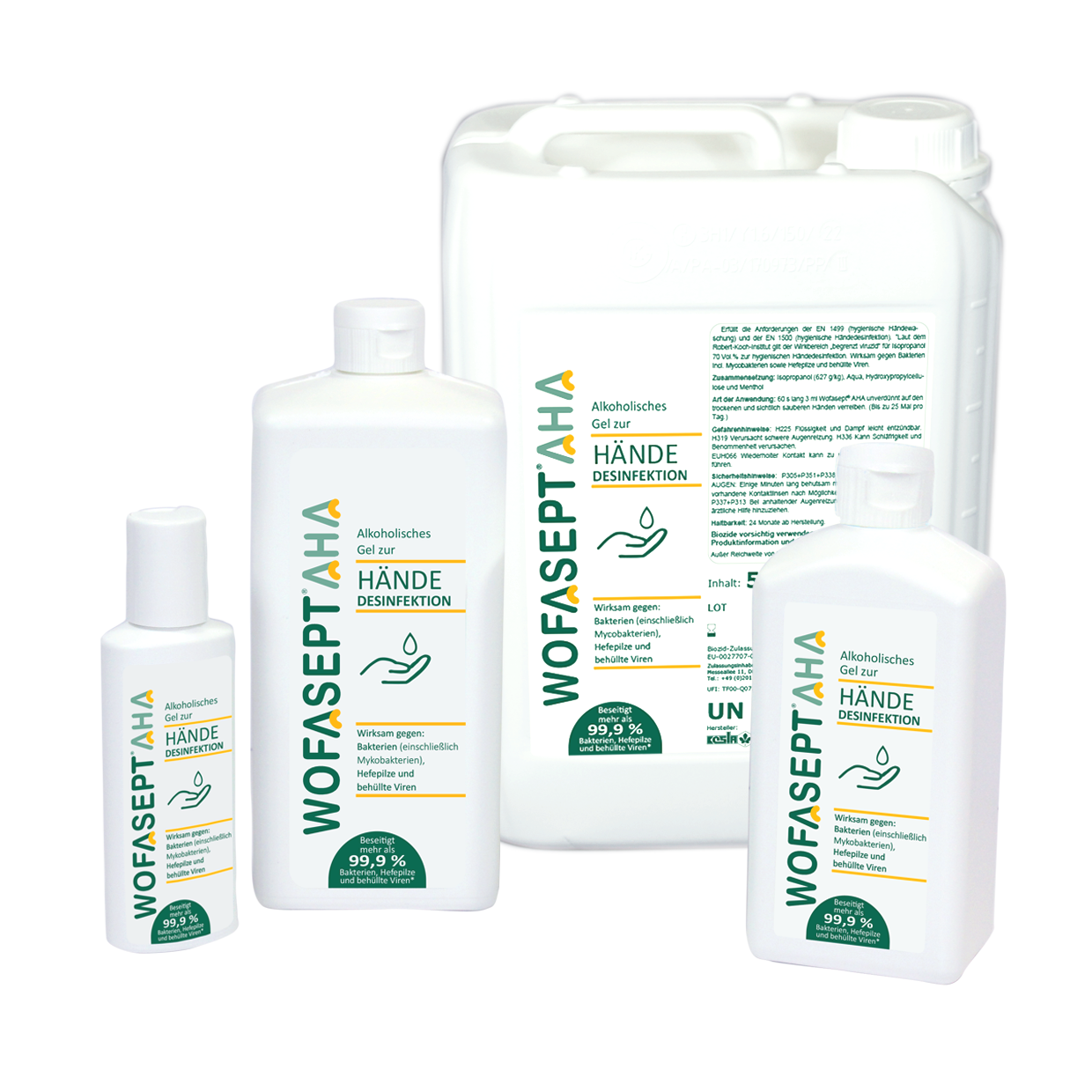 Wofasept® AHA ist ein alkoholisches Gel zur hygienischen Händewaschung und Händedesinfektion.